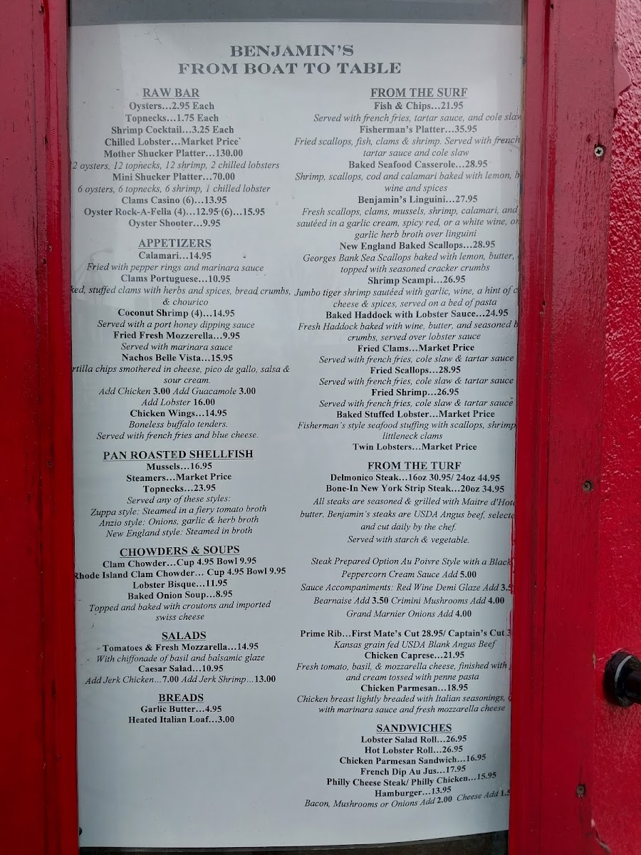 Welcome to Benjamin's, a hidden gem located at 254 Thames St, Newport, RI. This charming eatery boasts a vibrant atmosphere, perfect for both casual diners and seafood lovers alike. Its menu offers an array of delicious options, shining particularly bright during Raw Bar Tuesdays, where fresh clams, oysters, and shrimp are highlighted at delightful prices.