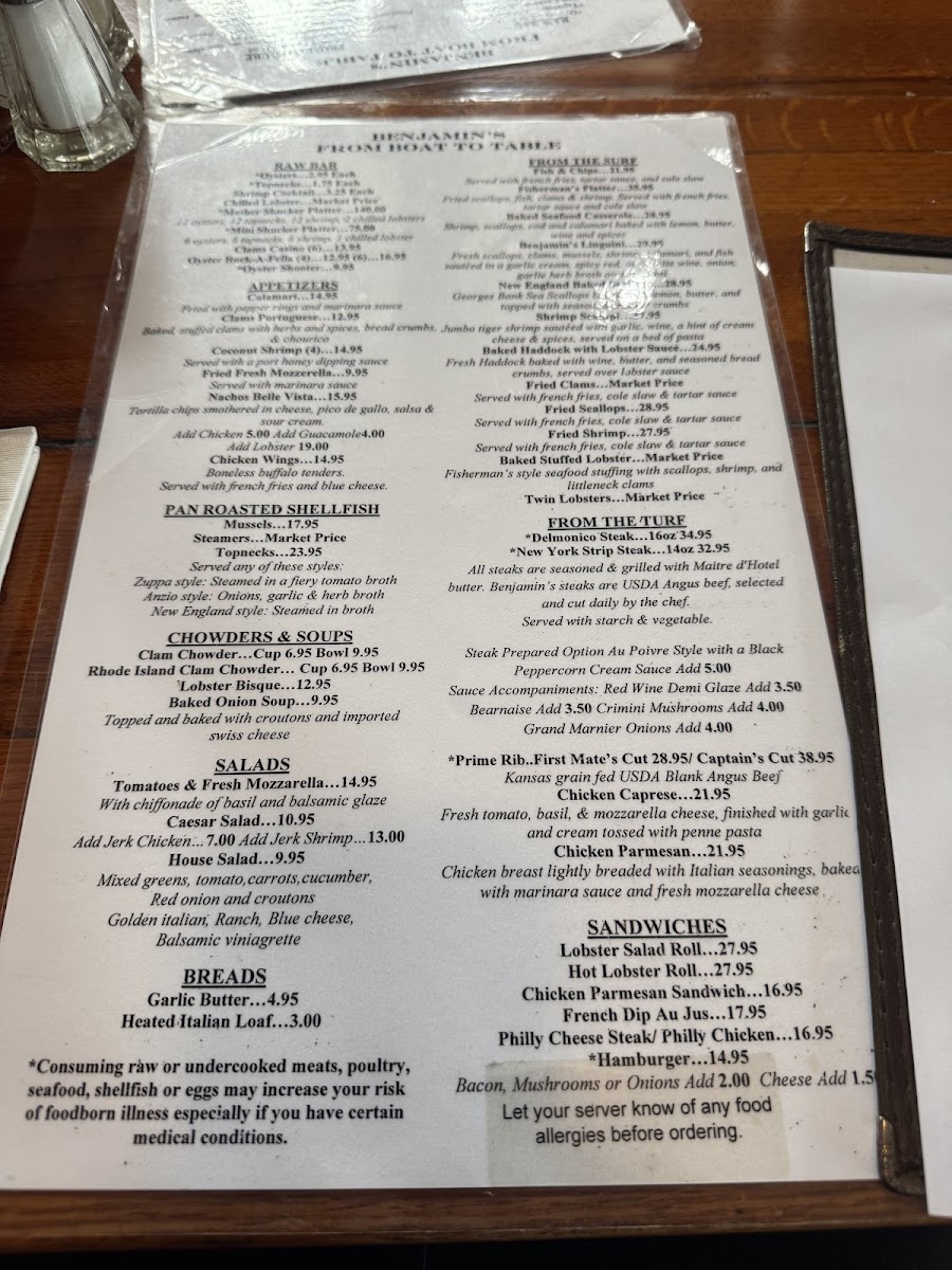 Overall, Benjamin's invites you to savor fresh ingredients and warm service, making it a must-visit on your culinary journey.